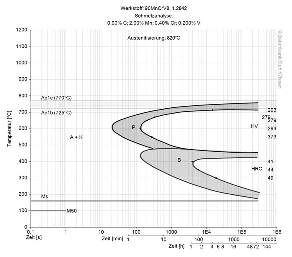 Hartowalność stali 1.2842 jest zwiększona dzięki dodatkowi manganu, podczas gdy w stali 1.2510 jest ona kompensowana przez wyższą zawartość chromu. Dodatkowo do stali 1.2510 dodawany jest wolfram, tworzący węglik spiekany; ten dodatek poprawia odporność na zużycie i odpuszczanie.